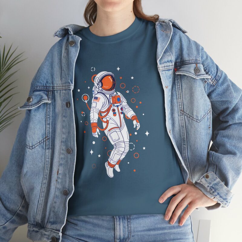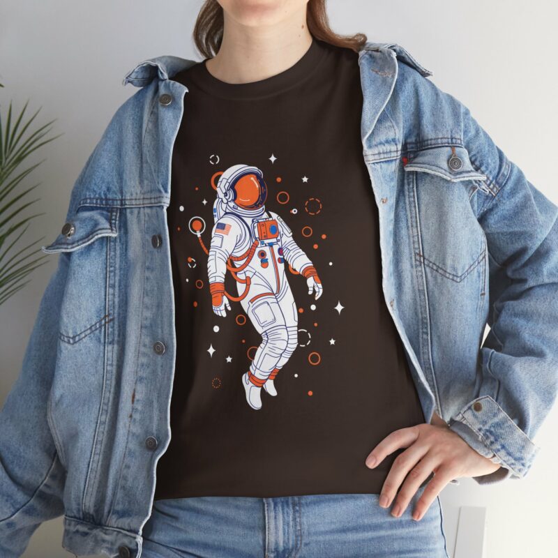 Introducing a trendy unisex heavy cotton tee that blends comfort with style. This classic tee is perfect for laid-back days or casual outings. The vibrant design features an astronaut, adding a playful touch for space enthusiasts, dreamers, and adventurers alike. It’s versatile enough to be worn at relaxed gatherings, road trips, or casual dinners. Ideal for gifting during holidays such as birthdays, or special occasions like graduations and space-themed parties. Each wear offers a soft, breathable feel, making it an everyday favorite in your wardrobe.