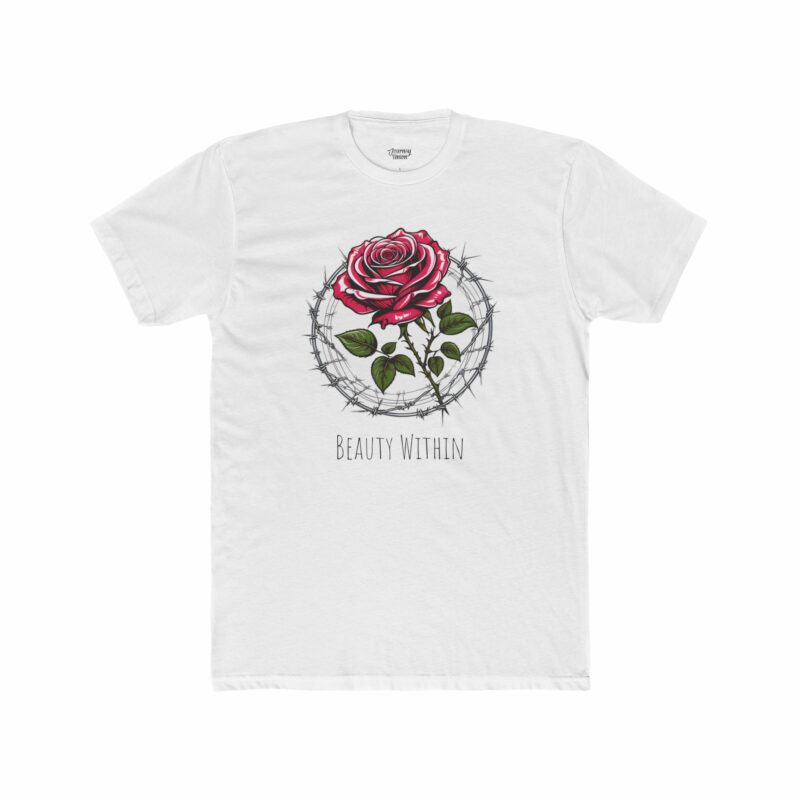 Beauty Within Rose Unisex Cotton Crew Tee – Inspirational Floral T-Shirt
