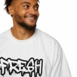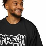 Men’s Heavy Oversized Tee – ‘FRESH’ Graffiti Print Streetwear T-Shirt