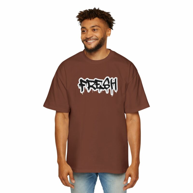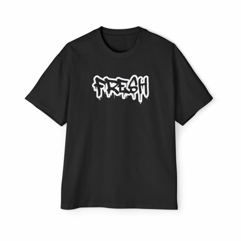 Men’s Heavy Oversized Tee – ‘FRESH’ Graffiti Print Streetwear T-Shirt