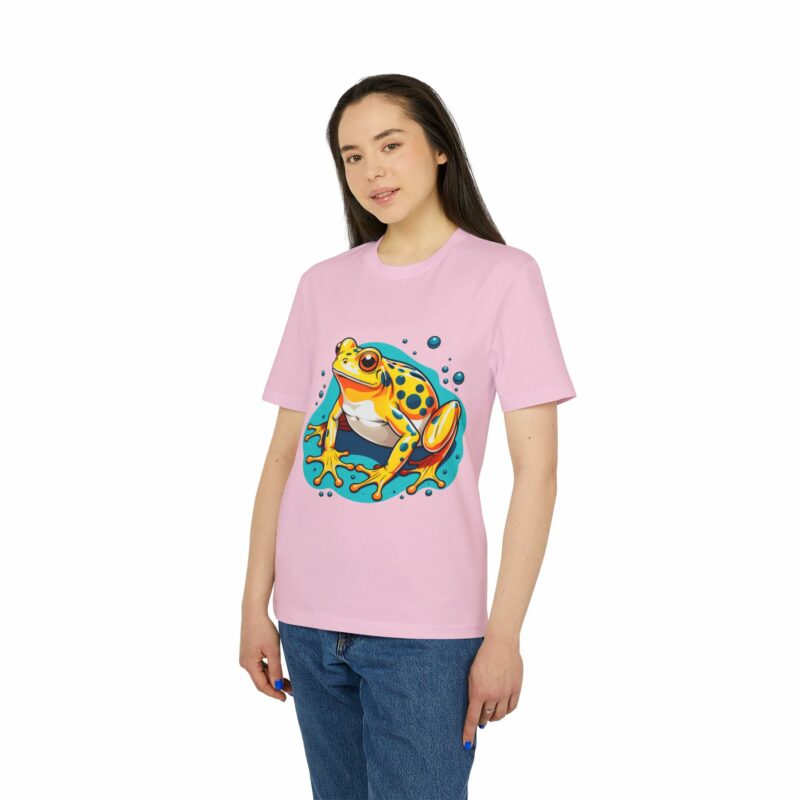 Introducing a vibrant Unisex T-shirt featuring a lively graphic design of a frog in vivid colors, perfect for adding a dash of personality to your everyday outfit. This T-shirt offers a fun and playful vibe, ideal for casual outings, weekends at the park, or a cozy day at home. Made for nature lovers, artists, and anyone who appreciates unique and quirky fashion, this shirt is your new go-to. It’s perfect for birthdays, casual hangouts, or just to express your unique style. Wear it during Earth Day celebrations or as a fun statement piece every day!